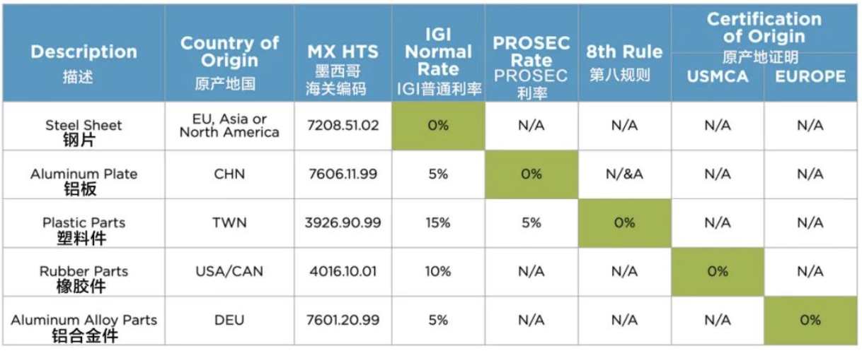 墨西哥进口税率取决于进口商品的HTS代码。常见的进口税包括:增值税,一般进口关税,海关手续费,补偿性关税。