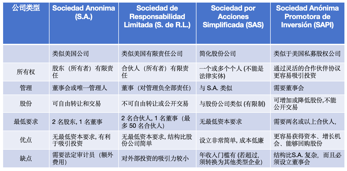 新设墨西哥公司:墨西哥提供多种公司类型的选择,每种都有自己的优势和要求。以下是最常见的几种简介: